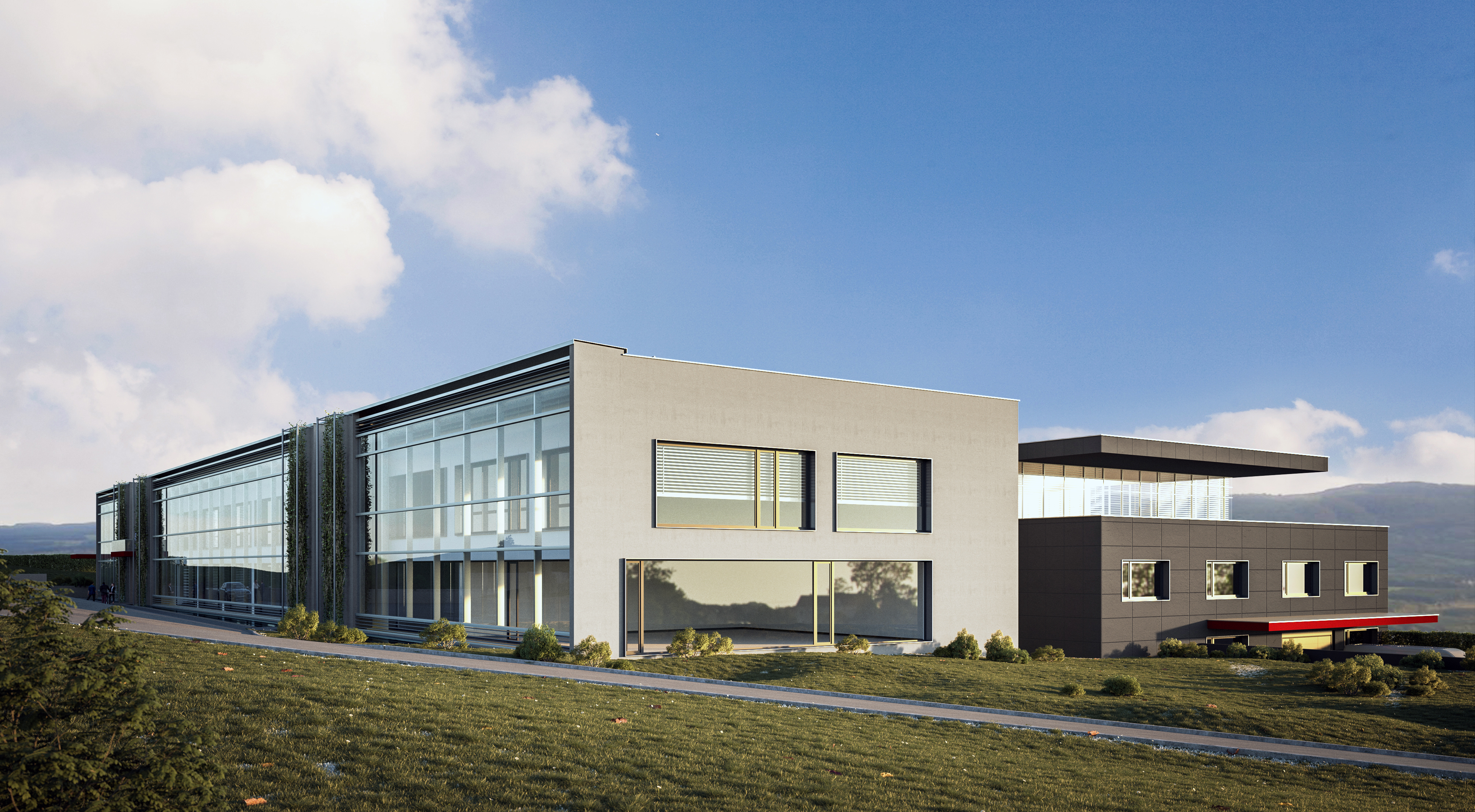 Das Gelände weist ein hohes Gefälle auf und Ziel war es, eine optimale Position hinsichtlich Gründungsbedingungen und Erdbewegung zur Vermeidung von erhöhten Gründungskosten und passender Anordnung von Nutzungen. Weiterhin wurde großes Augenmerk auf die Schaffung eines repräsentativen Eingangs gelegt, um dem Unternehmen einen attraktiven Zugang zu schaffen.