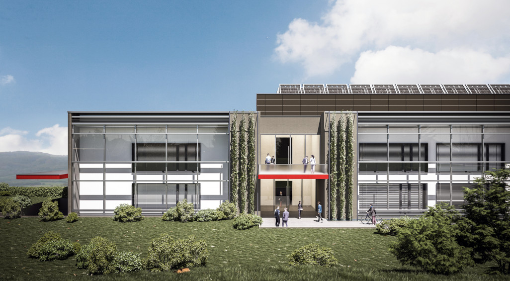 Das Gebäude ist in 2 verschiedene Baukörper (Nordriegel und Südriegel) gegliedert und besteht aus Laboren, Warenein- und -ausgang, Lager, Produktionsfläche, Vorfertigung mit Werkstatt, Produktion, Sozialbereich, Foyer, Cafeteria mit Außensitz und Technik.