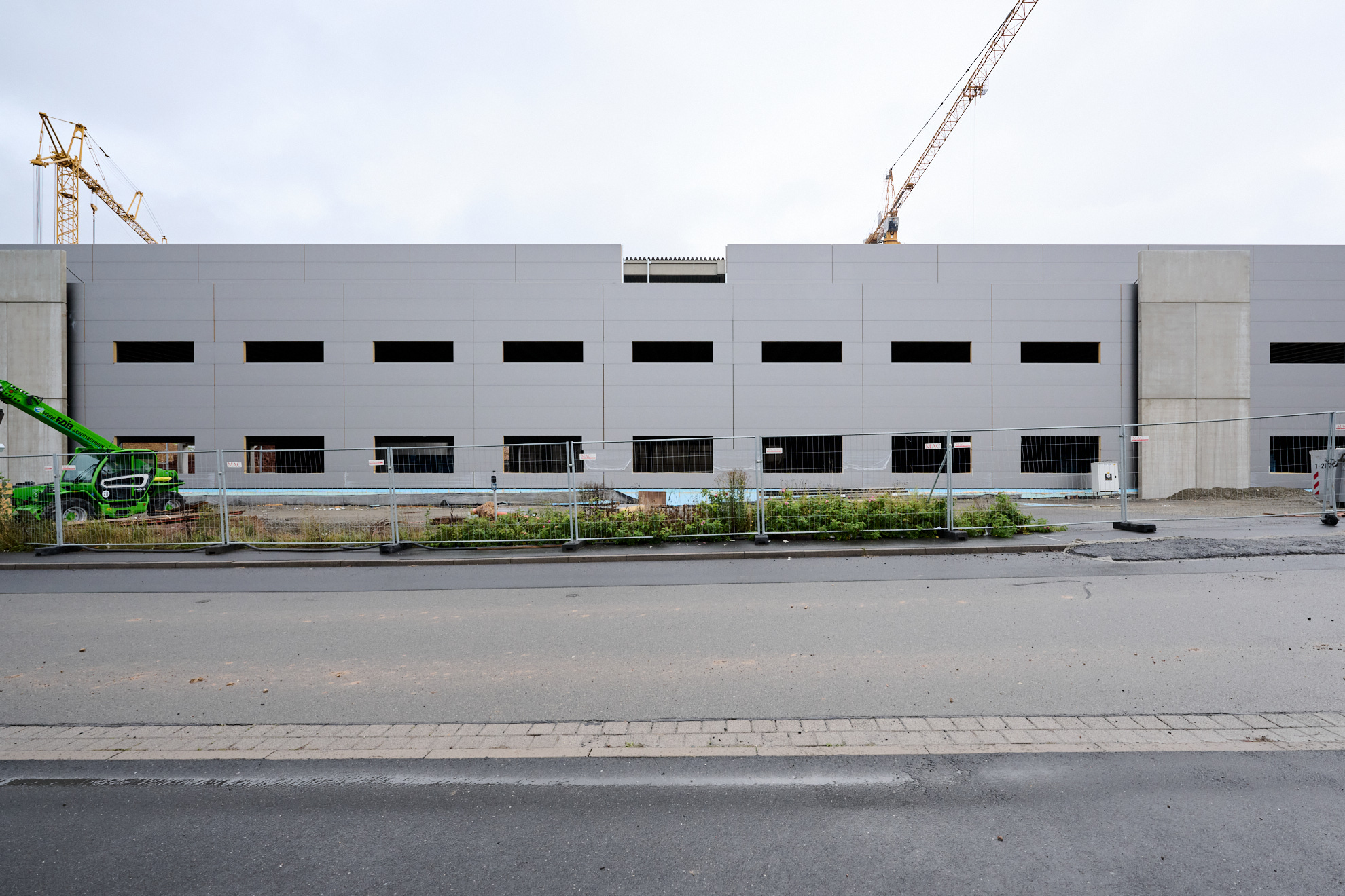 Die Fassaden sind als Lochfassaden geplant, an der Cafeteria und an den Eingängen sind teilweise großflächige geschosshohe Öffnungen. An der südlichen Gebäudefront ist der massiven Fassade eine Klimapuffer als Pfosten-Riegel-Konstruktion mit einer einfachen Verglasung vorgestellt. Diese ist optisch gegliedert durch die beiden Zugänge mit flankierender vertikaler Begrünung. Der südliche Baukörper wird mit einer hellen Sandwich-Fassade bekleidet, die Fassaden des nördlichen Baukörpers haben aber dunklere Erscheinung mit Fassadenplatten aus Metall.