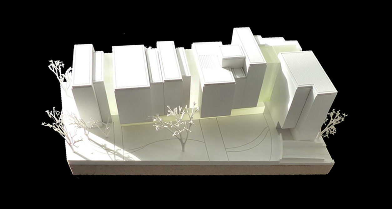 Das neue Gebäude zwischen Ortskern und Park eingeordnet, soll ein Haus im Park, im Fluss des Grüns, sein. Die Baumasse wird dabei geschickt gebrochen, um so die kleinteilige Baustruktur des historischen Zentrums zu übersetzen. Vogelnestern gleich schweben die Wohnungen am Park. Die 3 Durchgänge durch den Baukörper lassen das Grün des Parks für Passanten und Besucher auch hinter dem gleichsam perforierten Erdgeschoss sichtbar werden. Die Einsicht in den Garten und die Aussicht in den Park macht neugierig auf einen Blick hinter die Fassade.