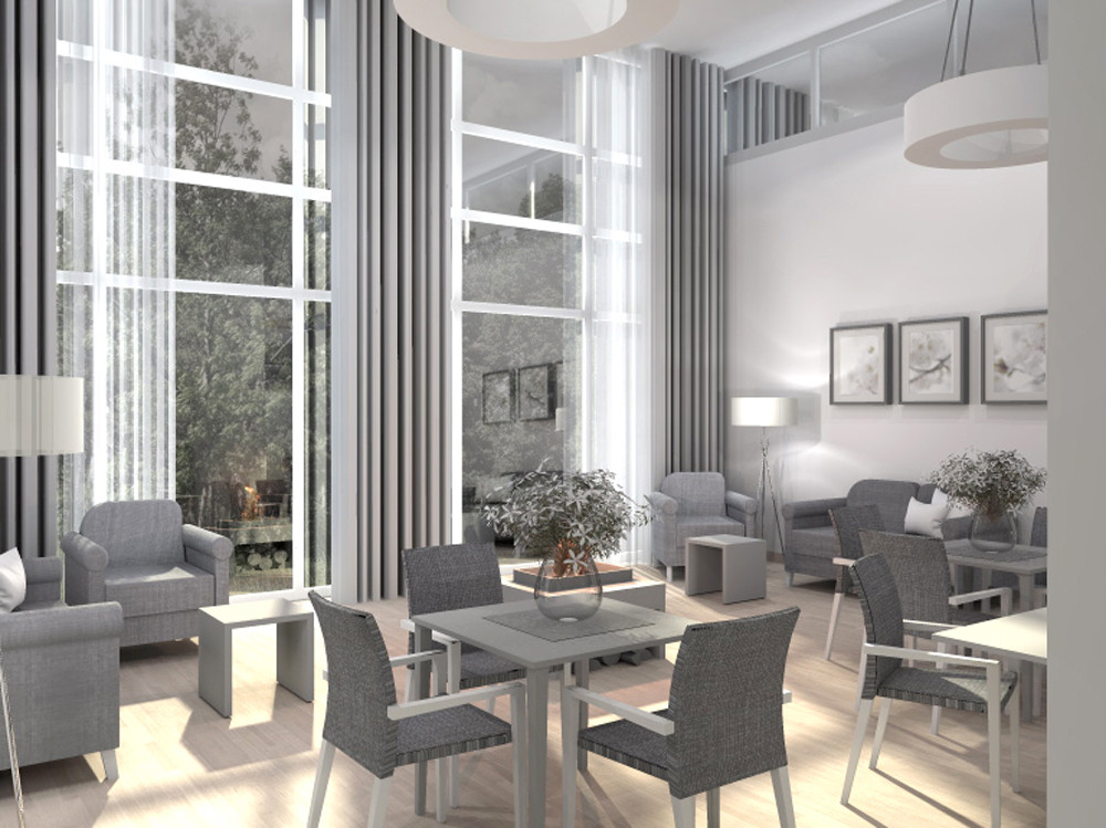 Für den Menschen in seiner letzten Lebensphase soll eine Herberge geschaffen werden, die es ihm ermöglicht, qualitative Zeit zu erleben. Im Zentrum steht der Bewohner, „der Gast“, sein Zimmer, welches sich über die Terrasse zu einem kleinen Garten hin öffnet und den Blick in die Ferne ermöglicht.