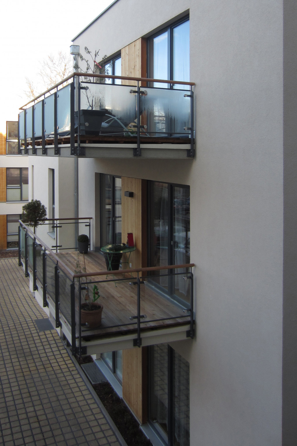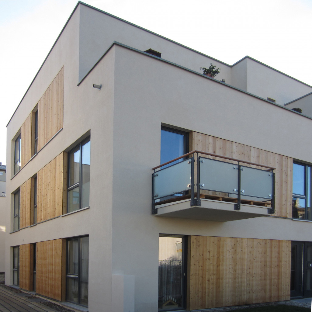 Auf dem rückwärtigen Grundstücksbereich entstanden zwei dreigeschossige Neubauten mit insgesamt fünf Wohnungen. Viel Licht, großzügige Balkone und hochwertige Oberflächen schaffen attraktive Domizile in direkter Nachbarschaft zum Elbufer.